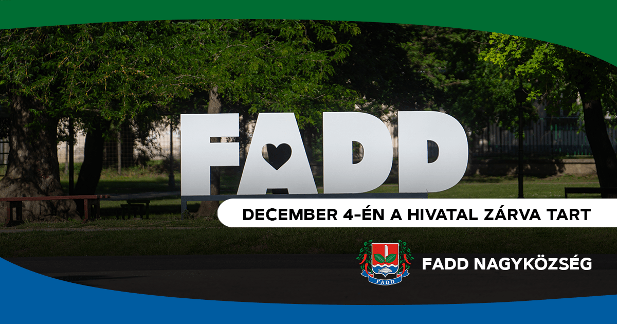 Értesítjük tisztelt lakosainkat és ügyfeleinket, hogy a Faddi Polgármesteri Hivatal 2025. december 4-én (csütörtökön) áramszünet miatt zárva tart.